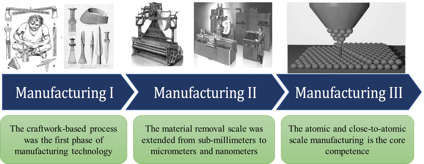 材料在原子量级被去除、转移或增加,跨越宏、微、纳观尺度