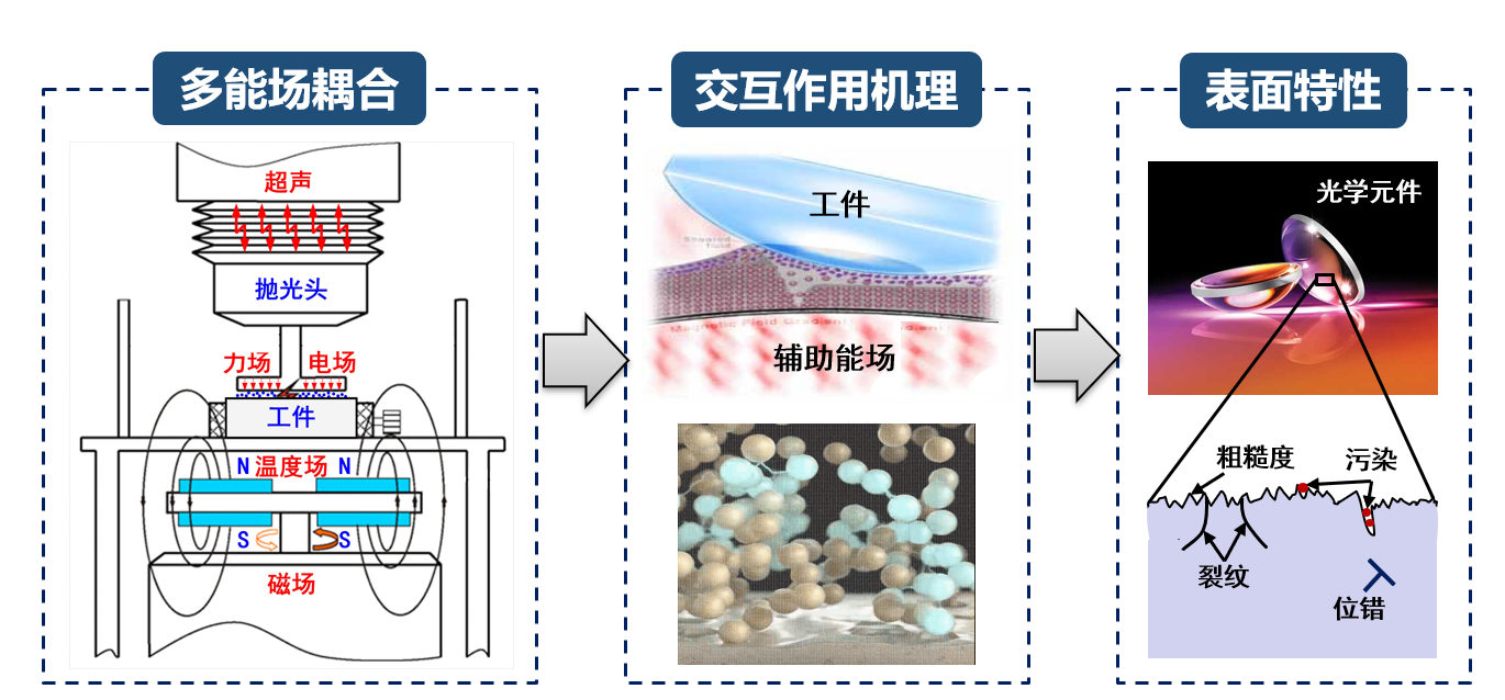 揭示力、光、热、化学等能场耦合作用机制,阐明工件表面特性演化规律