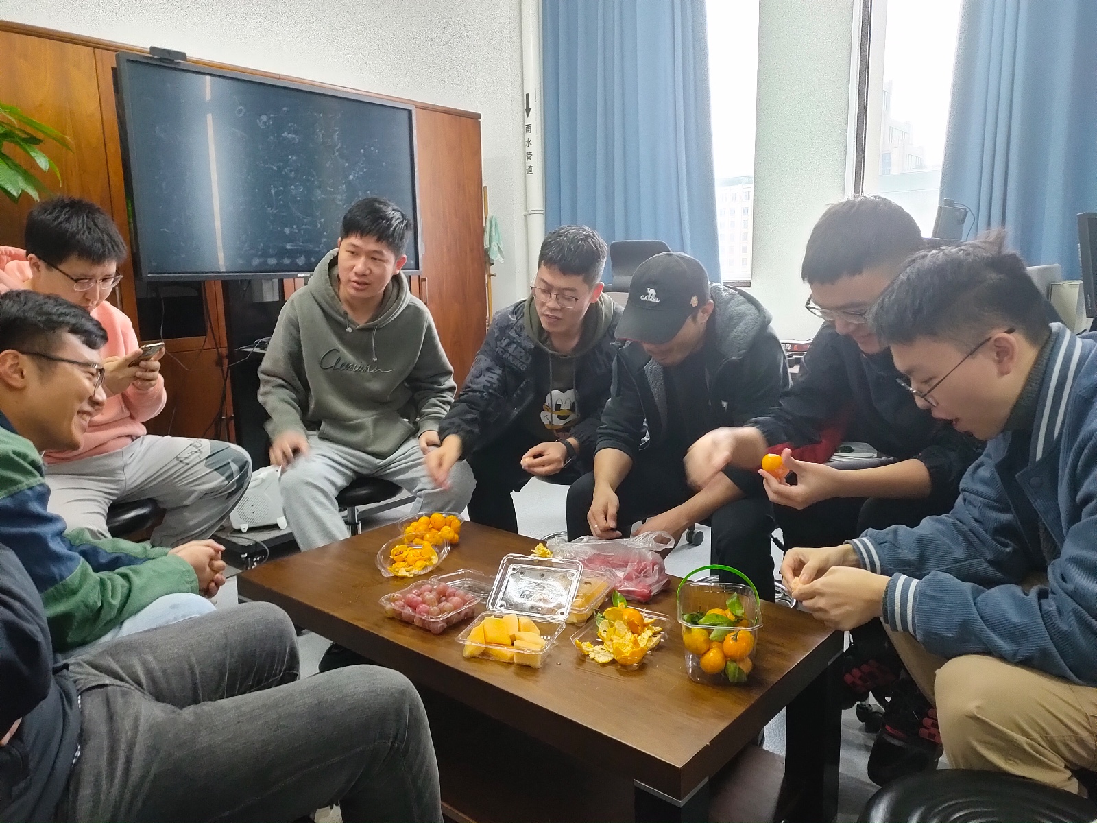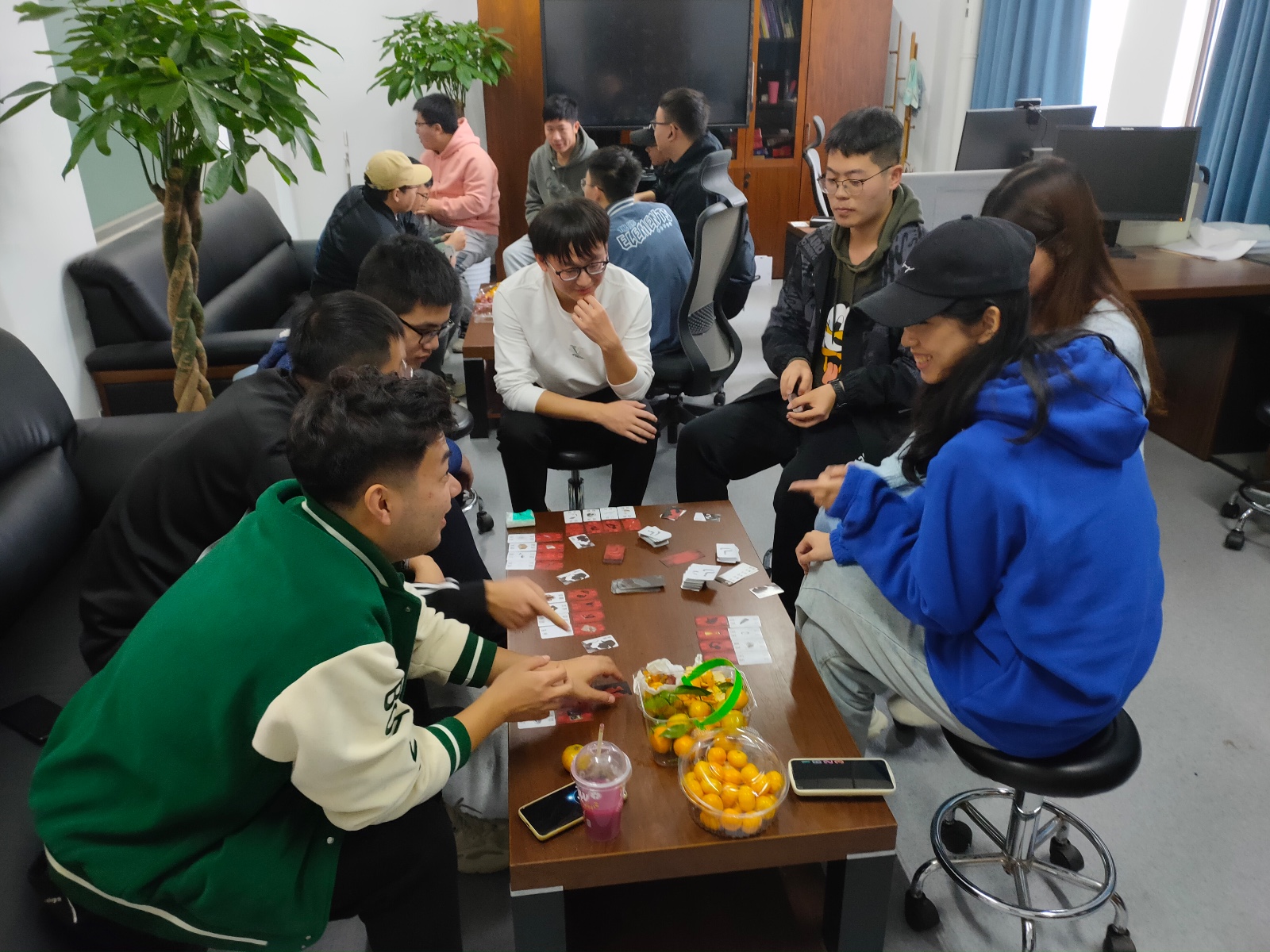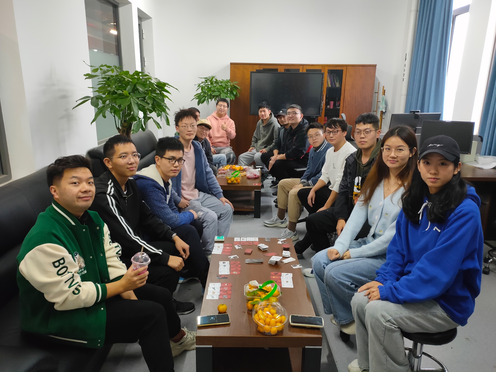 2022年10月27日,在研究助理张晶的组织下,团队已经提前准备了丰富的水果和零食等着大家大快朵颐,还准备了种类丰富的桌游供大家休闲娱乐。等到下午4点,大家准时欢聚在朱老师办公室,在轻松愉快的氛围下,伴随着阵阵畅谈声,本次团建活动拉开了帷幕。