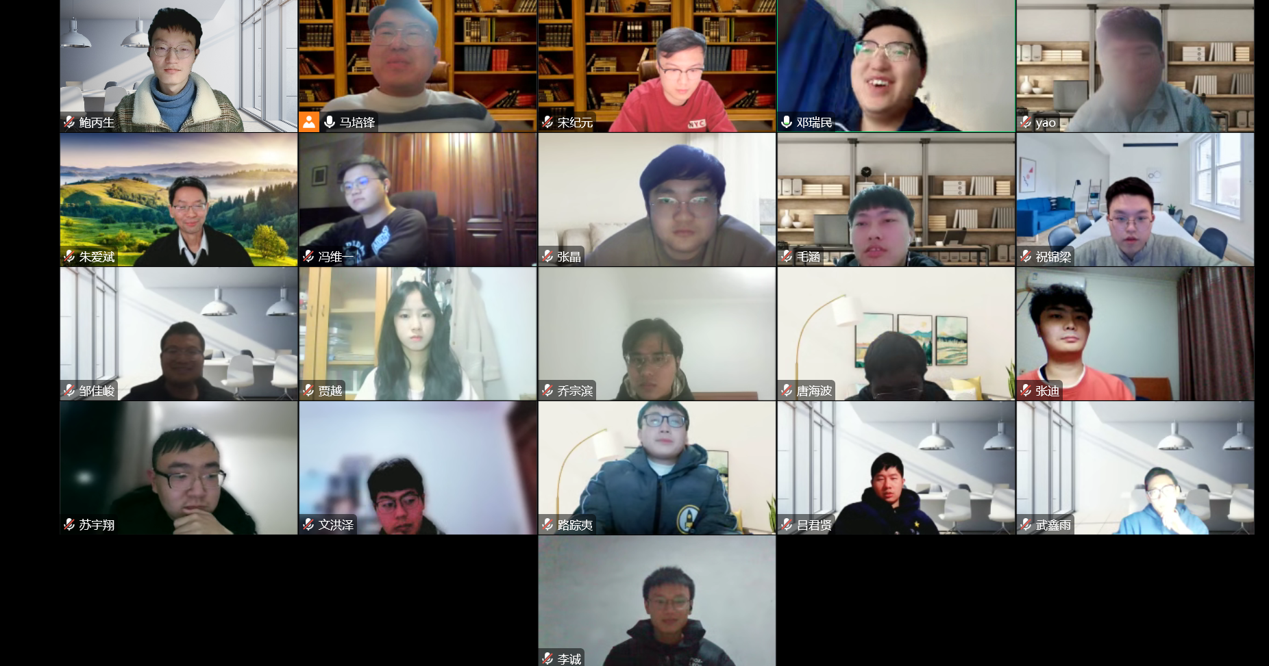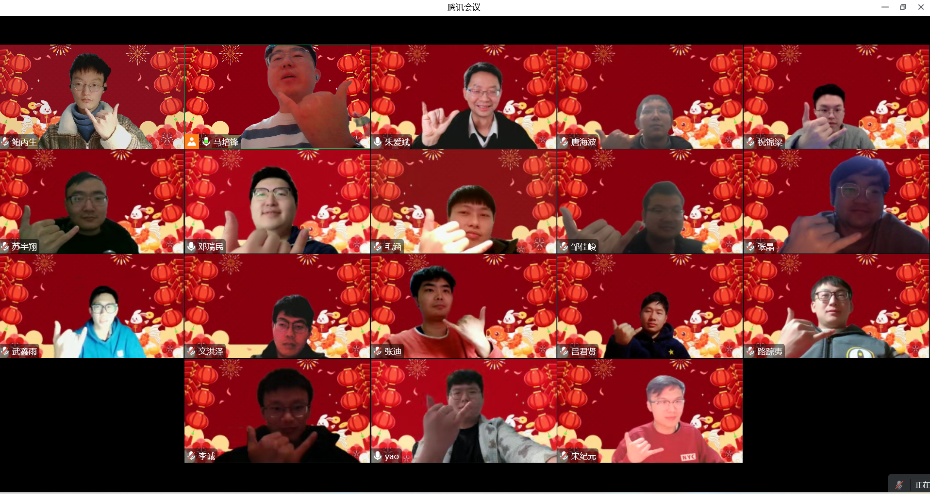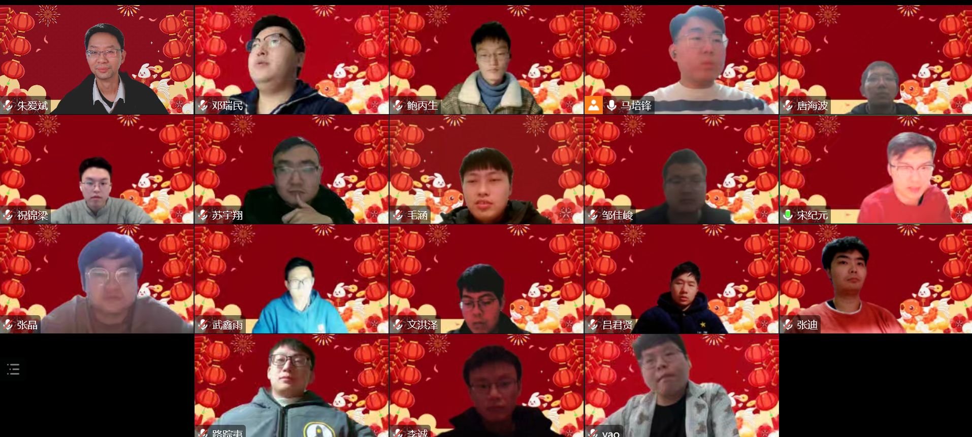 激烈的比赛过后,活动也即将落下帷幕,主持人马培锋播放了大家每个人录制的新年祝福视频,每位同学都将自己对2022的感激,对新的一年的期望,以及对团队的祝福表达在视频之中。视频接近尾声,活动也接近尾声。朱老师对整个活动表示了赞同,新的一年,团队中重要的两位师兄即将毕业,朱老师对两位师兄的未来表达了衷心的祝福,也祝愿大家都有美好的一年。