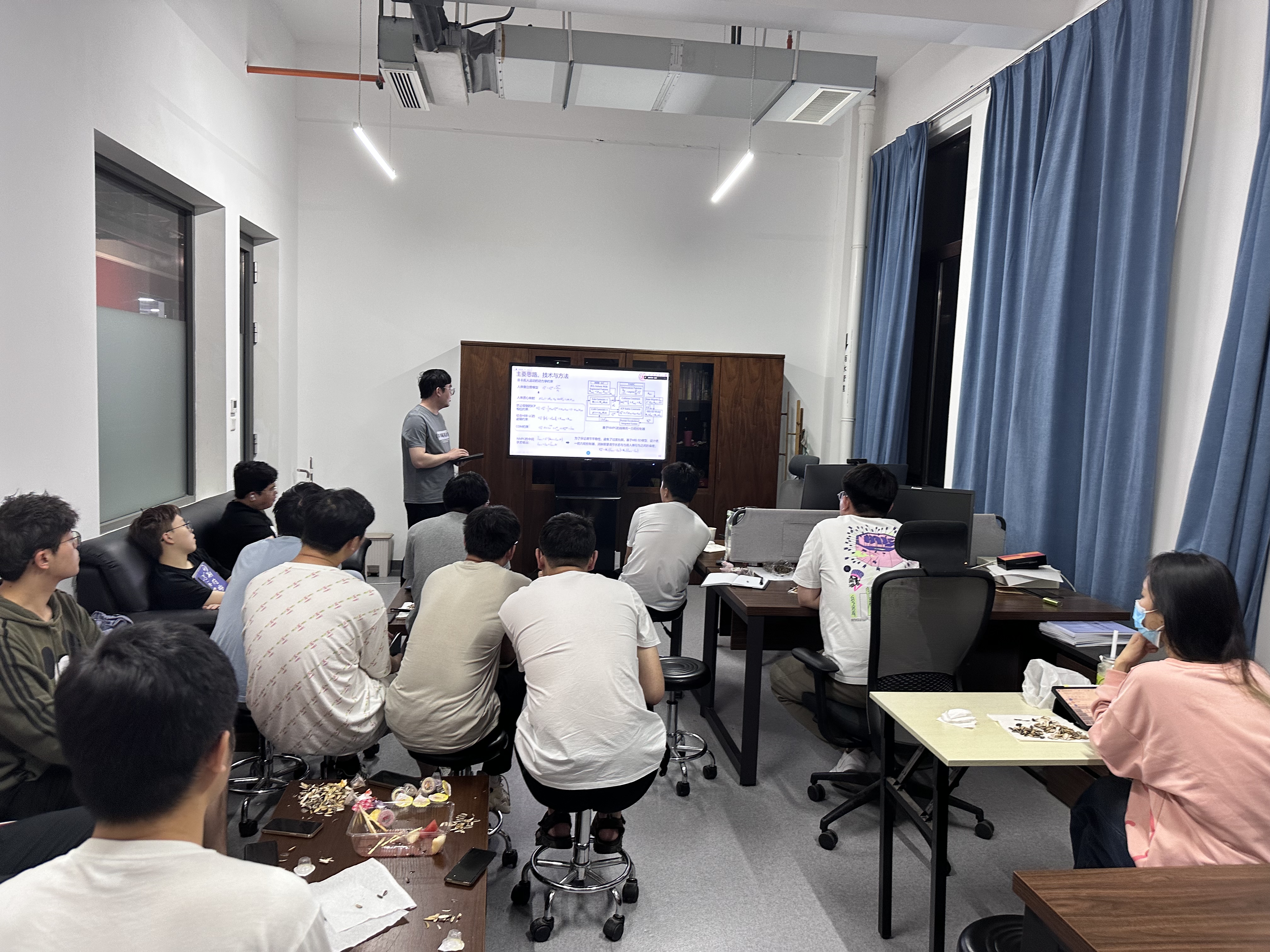 文献阅读一直是研究生科研生活的重中之重。朱老师一直强调科研的首要任务就是阅读文献,脱离文献阅读的科研不是好的科研,大家不仅要广读,更要精读。通过阅读文献,不仅可以了解到自己研究方向上最前沿的发展技术,站在学术前沿,时刻保持学术上的敏锐度;更能在其上的基础上深入挖掘创新思路、拓宽科研视野。3月28日晚上7:30举行的文献汇报交流会,团队成员齐聚一堂。该活动主要采取了茶话会的形式,大家可以在交流汇报的同时享用丰富的零食和水果。使得大家可以在一个轻松惬意的环境下实现科研观点和思维的碰撞,也能借此机会提升每个团队成员的文献阅读和汇报能力。