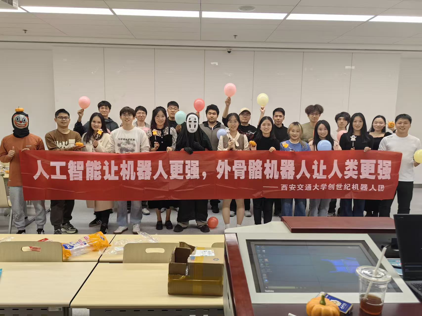 十月的最后一缕月光,被南瓜灯切成鬼脸形状,悄悄挂在实验室走廊。为共度一年一度的万圣节暨课题组团建活动,我们交大创世纪机器人团于10月31日晚19:30分在二号巨构6003教室准时开展了融合甜品DIY、趣味小游戏、多人共舞等多项娱乐项目的聚会“Party”。今晚,我们暂时把PPT、代码、数据表关进“小黑屋”,让灵魂出窍、让创意闹鬼——因为科研人也要“Trick or Treat”!