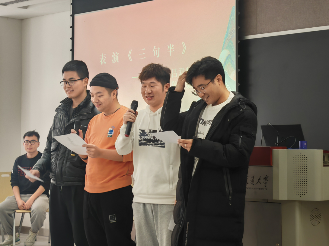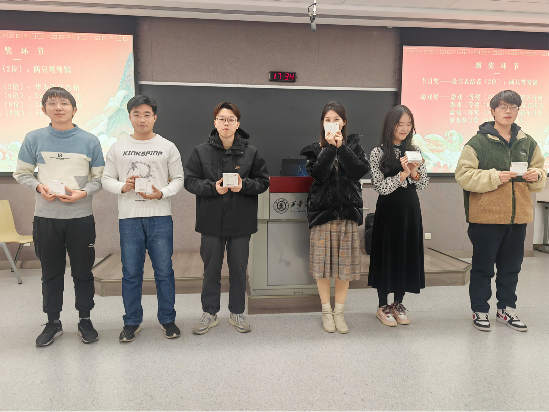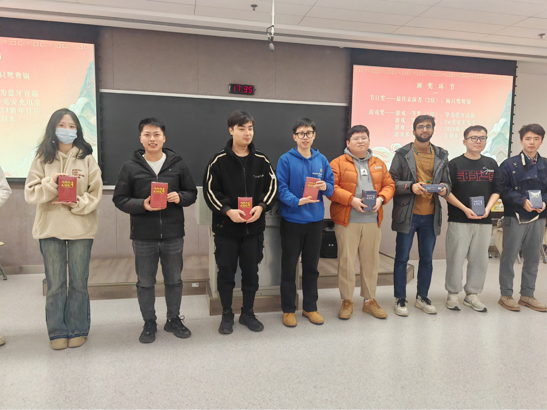 整个晚会不仅让成员们度过了一个愉快的时光,更强化了团队的凝聚力。团队成员们在共同努力奋斗的同时,也在轻松愉悦的氛围中拉近了彼此的关系。此次晚会不仅是对过去一年工作的总结,更是对新一年科研工作的美好祝愿。大家在这个寒冷的冬夜里,通过这场别开生面的新春晚会,感受到了团队的温暖和导师的关怀。科研之路漫长而充实,而团队的团结和互助更是大家砥砺前行的动力。新的一年,我们将继续携手前行,共同谱写新的科研篇章。祝愿我们的科研团队在新的一年里取得更加辉煌的成就!(撰稿人:龚鹤吟)
