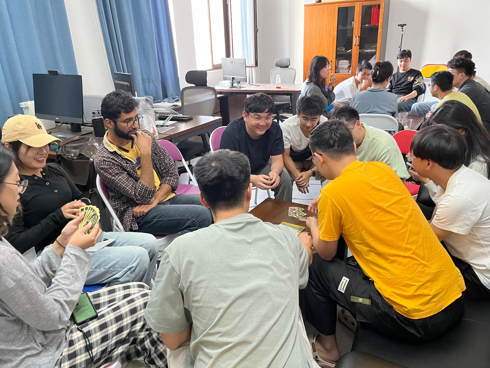在秋高气爽、硕果累累的十月,距离团队新鲜血液的加入已有一月有余。为了增强团队凝聚力、更好的促进新生与老生间的交流,帮助新同学更快融入团队生活,在朱老师的大力支持以及宋钊熙同学的精心策划下,我们团队于10月15日下午在老师办公室举办了本月的团建活动——休闲桌游活动。