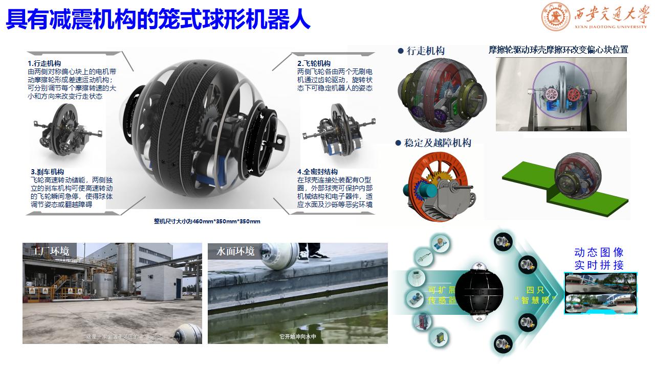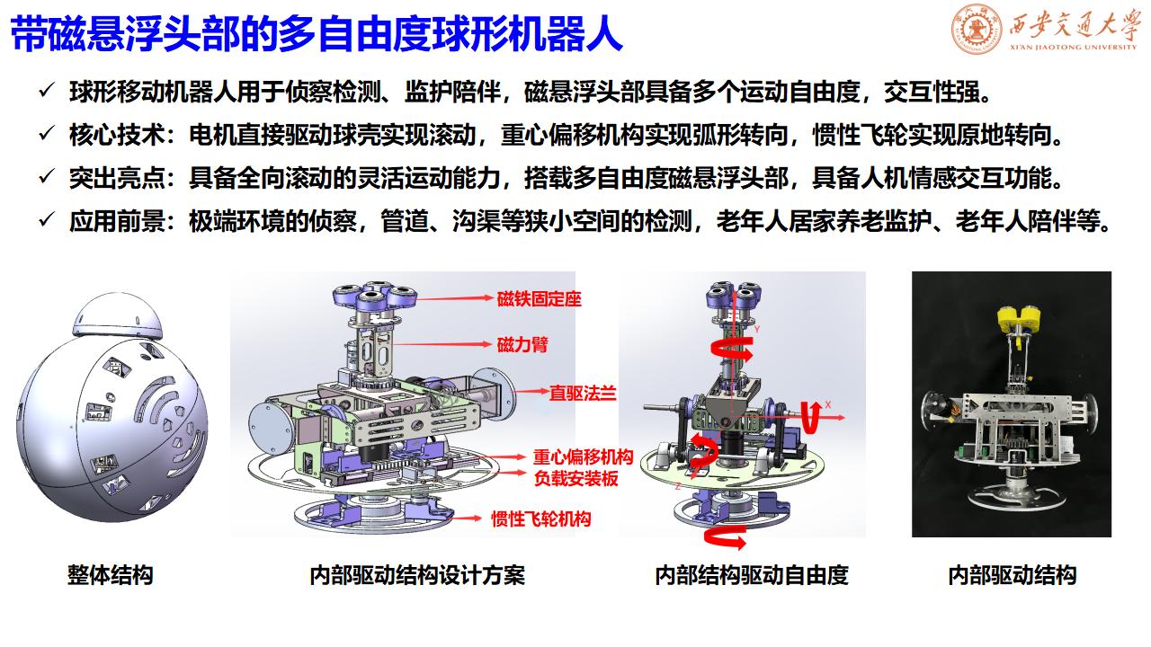 | 电磁悬浮头部的球形机器人 | 电磁悬浮头部的球形机器人自旋和行走 |