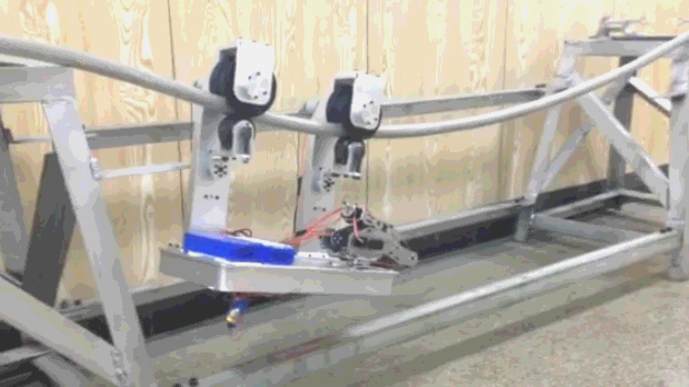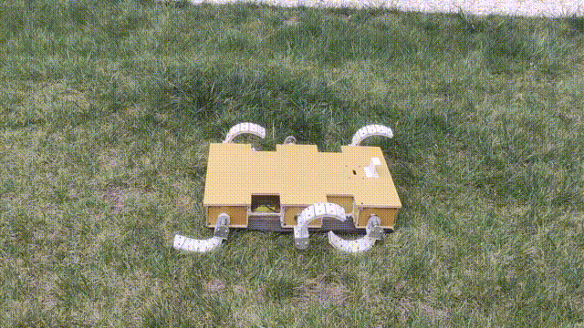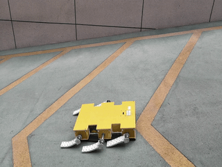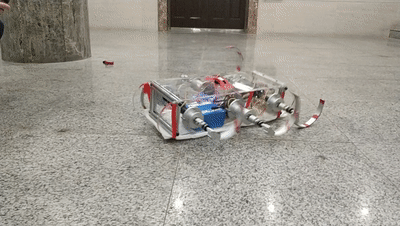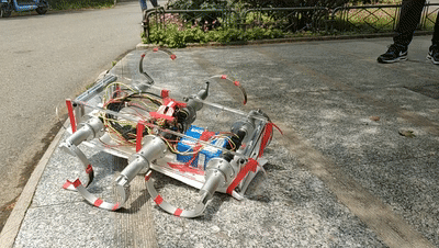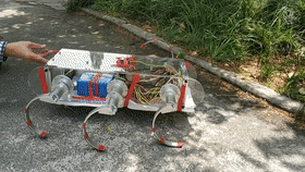 | 仿生六足机器人下台阶爬行 | 仿生六足机器人转弯爬行 |
