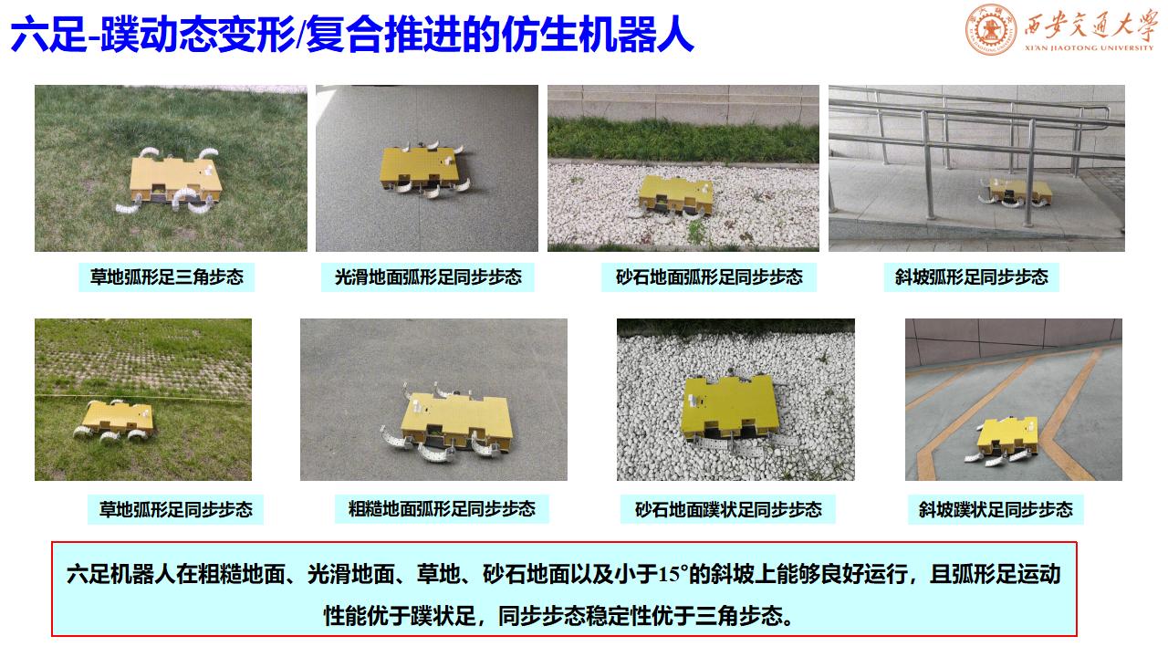 | 草地弧形足三角步态 | 砂石地面弧形足同步步态 |