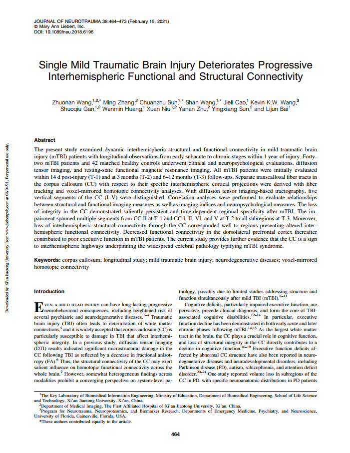 文章标题:祝贺课题组最新研究被评为Journal of neurotrauma封面文章