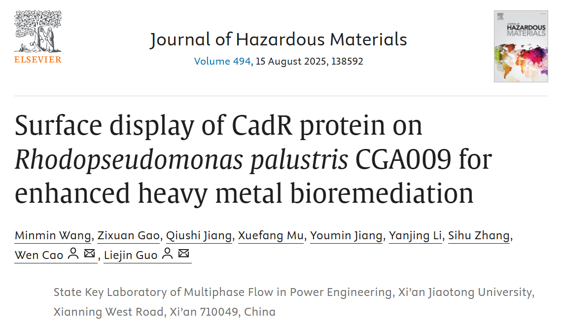 JHM Family|西安交通大学郭烈锦院士团队 – 构建光合细菌CadR蛋白表面展示系统并促进重金属生物修复