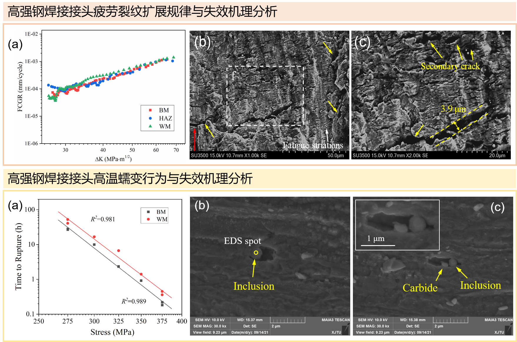 (1)研究了核电用不锈钢、加氢反应器用高强钢焊接接头的疲劳裂纹扩展规律、断裂韧性和高温蠕变行为,阐明了材料微观损伤机制。