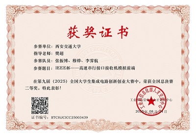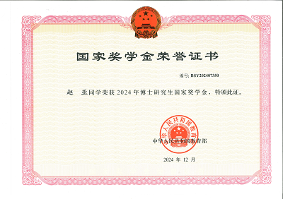 博士研究生国家奖学金(赵亚,top1%) 第九届全国大学生集成电路创新创业大赛 全国二等奖