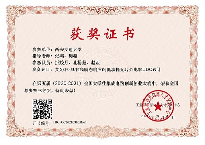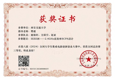 第七届中国研究生创“芯”大赛-圣邦微电子专项二等奖 第八届全国大学生集成电路创新创业大赛 全国三等奖