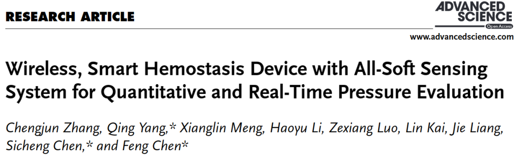 WEST可穿戴电子:陈烽教授团队电子皮肤-用于定量和实时压力评估柔性无线智能止血设备
