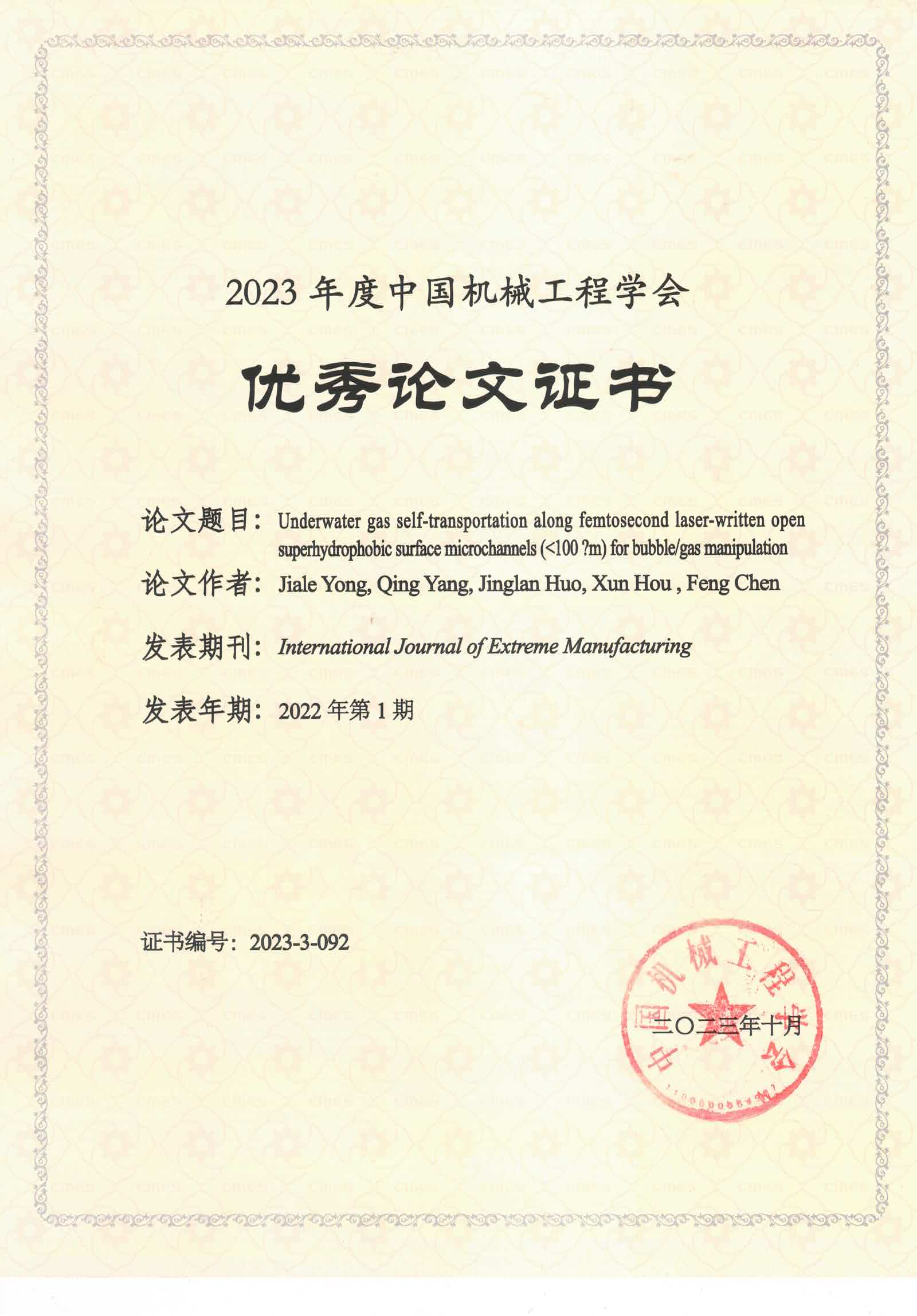 课题组一论文入选2023年度中国机械工程学会优秀论文