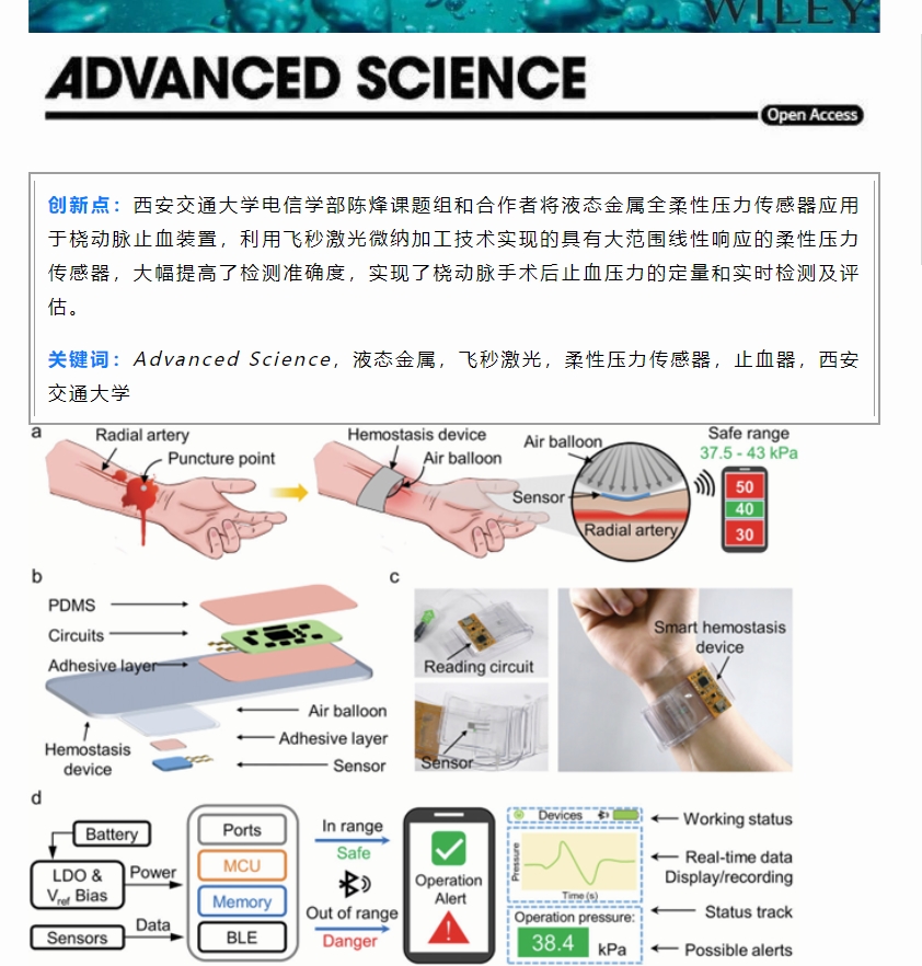 AdvancedScienceNews: 西安交通大学陈烽课题组AS-可定量和实时压力评估的无线智能止血器