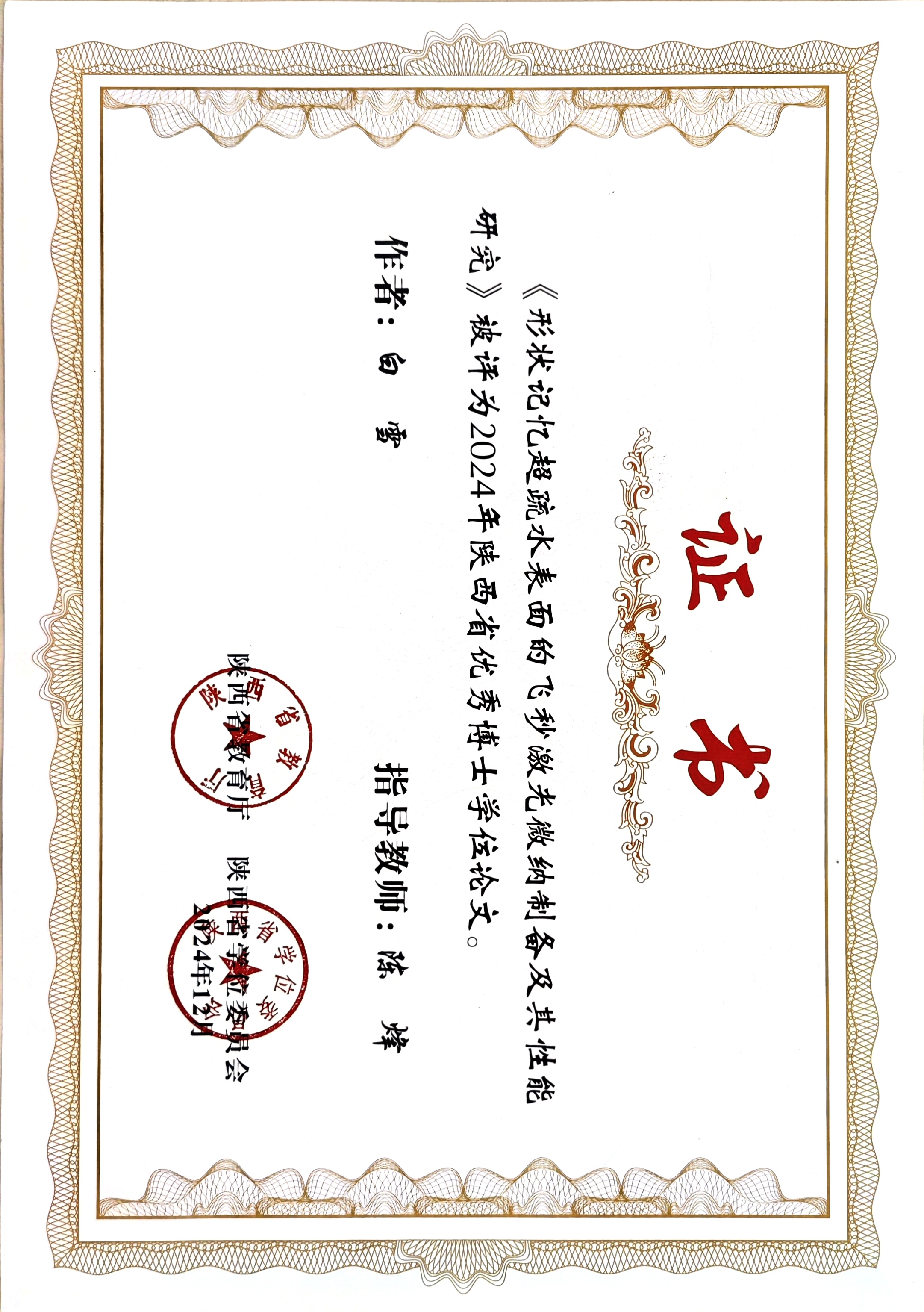白雪的博士论文获得2024年度陕西省优秀博士论文