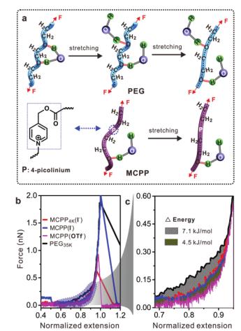 Abstract: Designing a main-chain visible-light-labile polymer is still a challenging task in related fields. In this work, a picolinium-caged main-chain photolabile polymer (MCPP) is firstly reported, where the C-O bonds of picolinium groups are efficiently cleaved (>95%) upon visible light irradiation (452 nm). The degradation rate of the MCPP is easily tuned by adjusting the concentration of the catalyst, irradiation intensity and time. Importantly, after photodegradation, the molecular weight of degradation products is decreased to less than 650 g mol(-1). It is found that, unlike forming a helix structure of pure polyethylene glycol in water, the picolinium-caged MCPP is in a linear conformation. Moreover, nanopore-based single-molecule analysis indicates that both the MCPP and degradation products can easily pass through a biomimetic lipid membrane, and the passing speed can be tuned by varying the applied bias voltage. Cell cytotoxicity and proliferation experiments demonstrate that both the MCPP and degradation products are nontoxic, but only the MCPP is favorable for cell proliferation. On the basis of these results, it is anticipated that the MCPP is an exceptional candidate of photodegradable materials in chemistry, pharmacy, materials science and medicine.