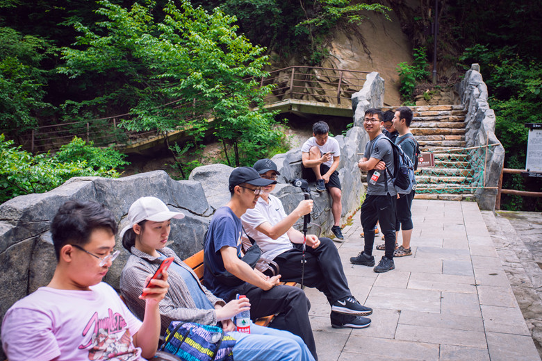 内容: 2019年6月18-19日,教研组为丰富业余文化生活、提高科研效率、欢送毕业班同学,组织了金丝峡两日游,同学们度过了一次安全愉快的夏游活动。 祝毕业班同学头枕满天星、奋力奔前程! 图1 第一站:棣花古镇(宋金边城、贾平凹故居)。棣花寓意兄弟之情,取自诗经小雅:“常棣之华,鄂不韡韡;凡今之人,莫如兄弟” 图2 第二站:金丝峡漂流。夫人赋七绝:三国水战入云起,玉溅珠飞百丈追。大略顺流决胜负,轻舟十里不觉归。 图3 第三站:金丝峡大峡谷,陕西八大AAAAA级景区之一 图4 漂流之一:悠闲自得 图5 漂流之二:奋力前行 图6 漂流结束:意犹未尽 图7 金丝峡瀑布之一 图8 金丝峡石桥小憩