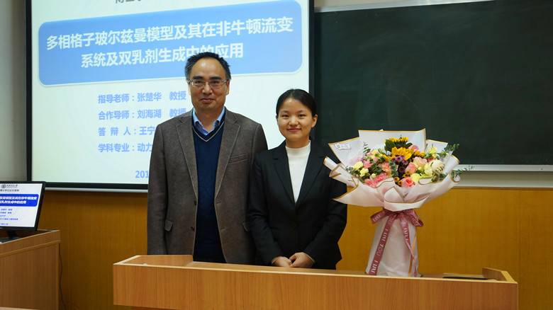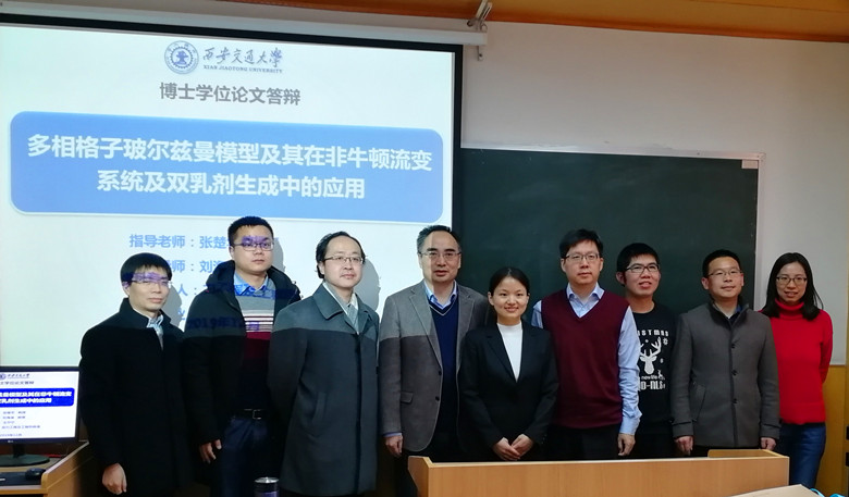 内容: 热烈祝贺王宁宁顺利获得博士学位,并发表教研组在读博士生的第一篇JFM论文。 希望宁宁博士不忘一流初心,牢记一流使命,在复杂流体建模及机理研究方向上取得更多一流成果! http://gs.xjtu.edu.cn/info/1186/6747.htm Wang Ningning, Semprebon Ciro, Liu Haihu, Zhang Chuhua, Kusumaatmaja Halim, 2020, Modelling double emulsion formation in planar flow-focusing microchannels, Journal of Fluid Mechanics,895: A22-1-36 https://doi.org/10.1017/jfm.2020.299. 图1. 答辩合影。左起:刘立军教授,王岩教授,陈效鹏教授,张楚华教授(导师),王宁宁,唐桂华教授(主席),刘海湖教授(导师),王金华教授,琚亚平副教授(秘书) 图2. 师生合影。左起:张楚华,王宁宁