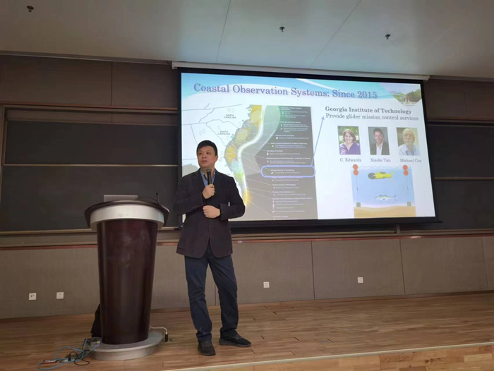 访问期间,张福民教授于2023年12月27日上午,在创新港为全校师生带来了一场机器人前沿技术学术报告,主题为“Autonomy for Active Perception by Robot Swarms”,曹建福教授主持了报告会。在报告中,张福民教授生动地介绍了机器人在海洋环境监测中作为移动传感平台的关键作用,深入阐述了基于鱼群觅食行为启发的多水下机器人主动感知方法的研究成果,并展示了运用水下滑翔机进行海洋环境自主观测的试验结果。现场师生与张福民教授进行了热烈的讨论互动,张教授对现场同学提出的一些问题作了详细解答,使在座师生们获益良多。
