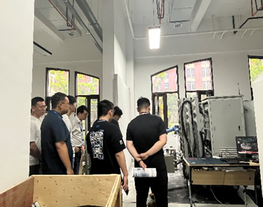 本次培训包括课堂教学和现场教学两个模块。课堂教学包括智能建造技术、建筑机器人、零碳放建筑系统等内容,曹建福教授做了“机器人开创建造新未来,助力建筑业智能化转型升级”的讲座。7月3日下午培训班成员到达西安交通大学创新港校区的建筑机器人实验室进行现场教学,曹建福教授与学员们进行了交流,曹晔老师介绍了团队近年在建筑机器人关键技术、工厂预制机器人、墙面作业机器人等方面的最新成果,并展示了一些研制的建筑机器人设备。