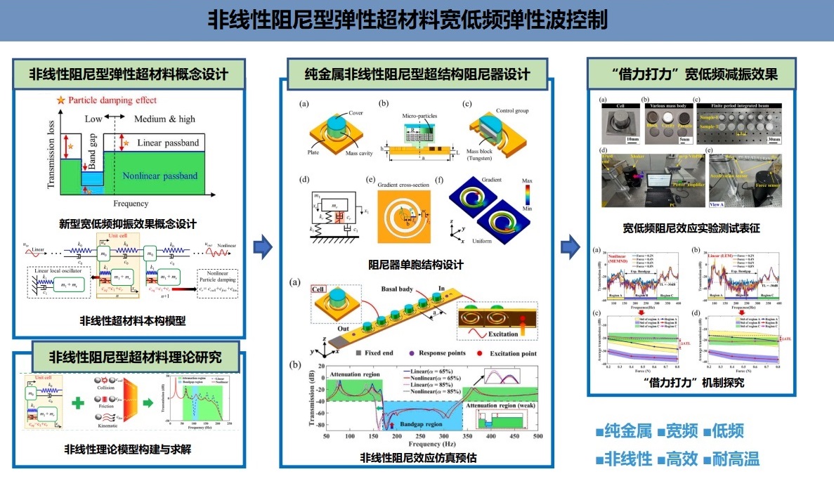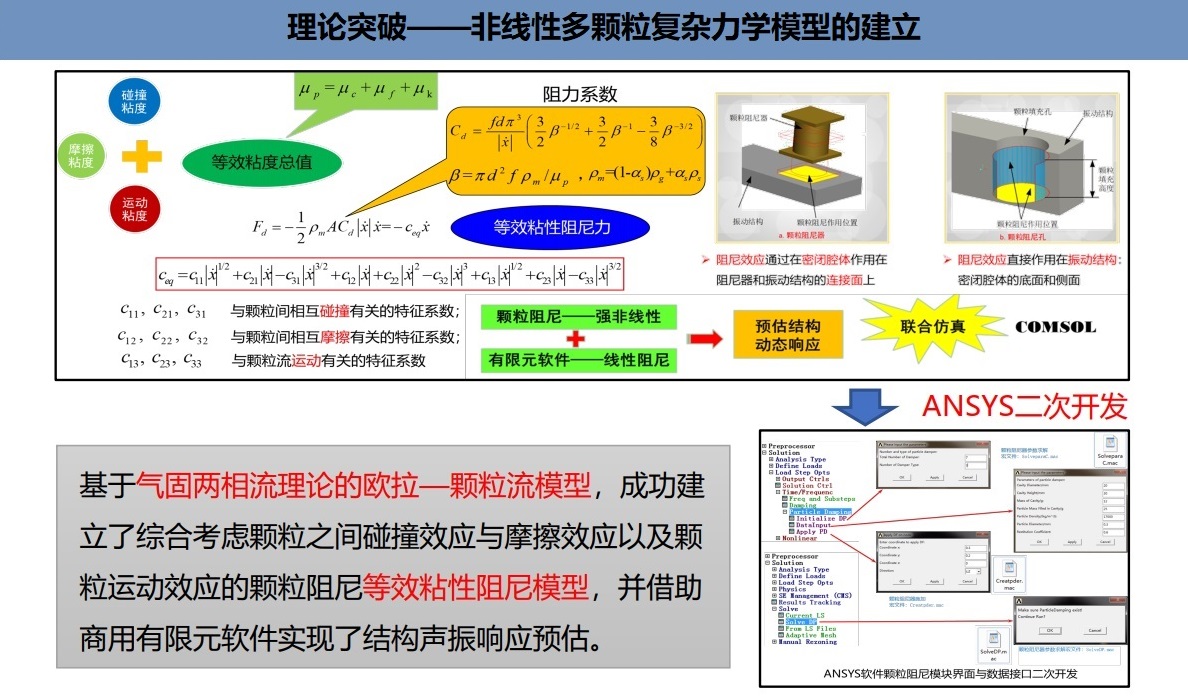 在国家自然科学基金面上项目和国家自然科学基金指南引导类原创探索计划项目的资助下,开展了包括基于载荷匹配的颗粒阻尼减振技术、基于超材料的轻质多功能吸隔振技术和基于传递路径分析的阻尼减振技术等一系列新型多维度一体化振动控制技术研究,研究成果成功用于多种工程实际结构的减振设计,并在Composites Part B: Engineering、International Journal of Mechanical Sciences、Mechanical Systems and Signal Processing和Journal of Vibration and Acoustics-Transactions of the ASME等国际权威期刊发表SCI收录论文20余篇。