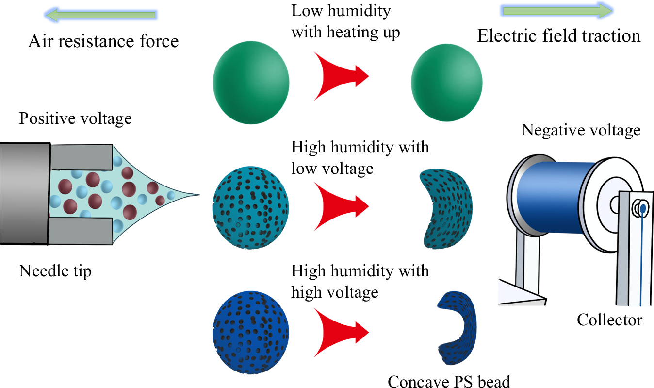 图3 静电喷雾过程中形成球形和凹形PS珠的示意图