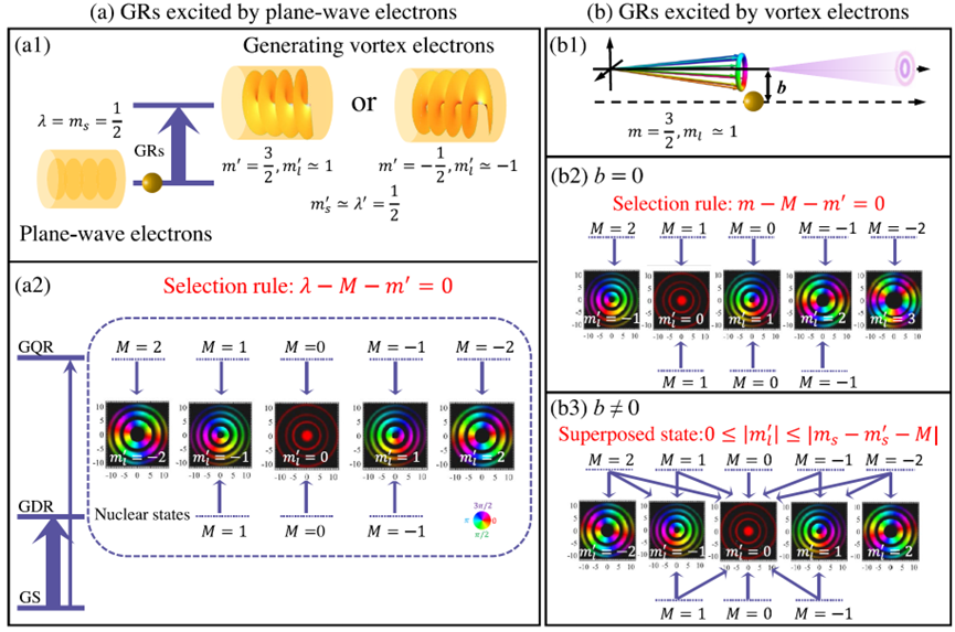 栗建兴教授团队与兰州大学核科学与技术学院牛一斐教授团队合作,针对核物理中长期存在的电子激发核巨共振中的角动量转移机理难题,发展了一种角动量分辨的非弹性散射理论,提出了基于电子探针调控原子核巨多极共振的新方案,为传统核结构研究提供了新的视角。