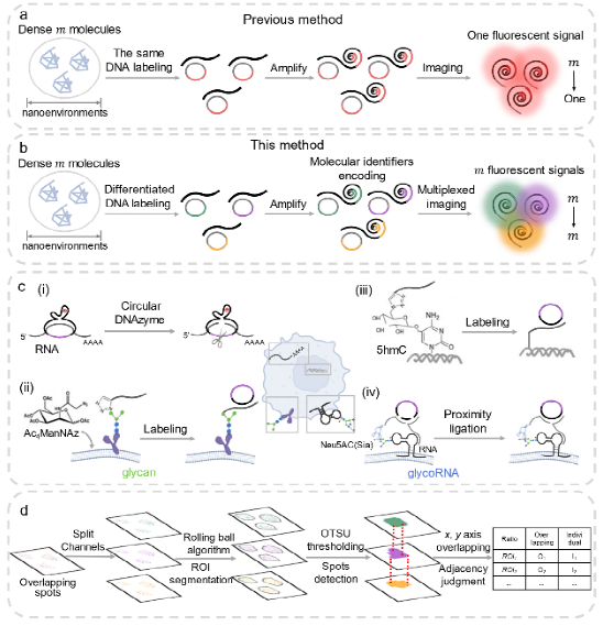 (c) 四种主要生物分子 (RNA、glycan、5hmC和glycoRNA) 的DNA识别标记与编码方法