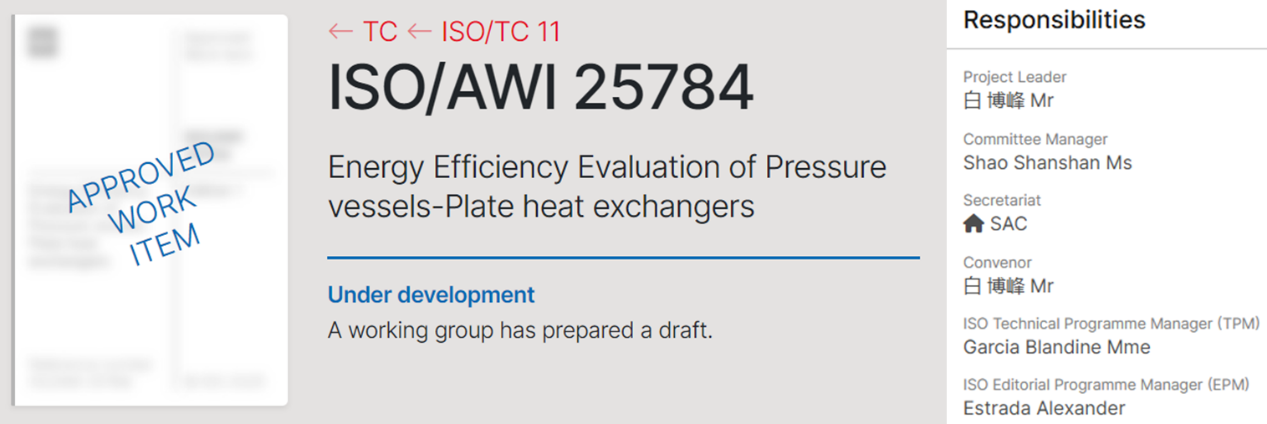2025年5月13日,由西安交通大学绿色氢电全国重点实验室副主任白博峰教授领衔提出的国际标准新提案——ISO/NP 25784《压力容器能效测试—板式换热器》(Energy efficiency evaluation of pressure vessels – Plate heat exchangers),在国际标准化组织锅炉和压力容器技术委员会(ISO/TC11)成功获批立项。