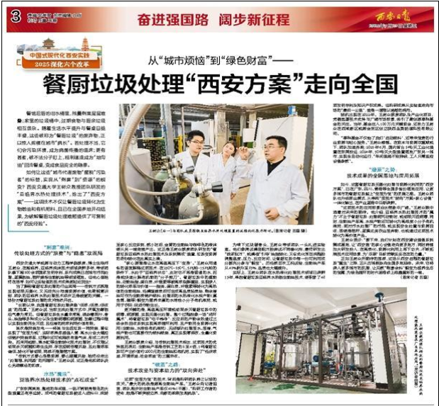 如今,这套餐厨垃圾无害化处理与资源化利用的“西安方案”,已在全国多省份落地应用,让更多城市的餐厨垃圾踏上“变废为宝”的逆袭之路。王树众团队也升级商业模式,从单纯“卖技术”转向“方案+核心设备”一体化输出,在产业蓝海中日渐深耕。