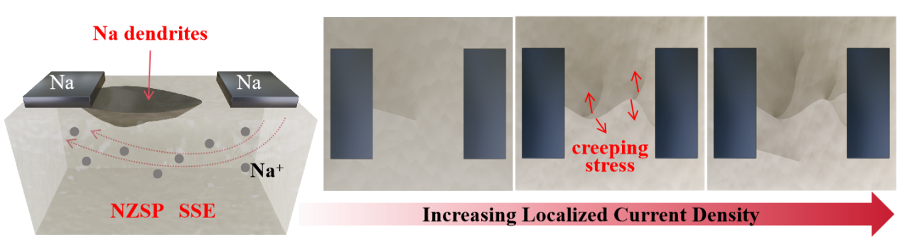 固态钠电池是潜在的高能量密度和高安全性的下一代储能电池技术,其中固态电解质决定了固态电池电化学性能的基础。NASICON型Na3Zr2Si2PO12(NZSP)氧化物陶瓷固态电解质由于其高离子电导率、空气稳定性和高剪切模量的优点而受到广泛关注,但枝晶问题极大限制了NZSP基全固态电池技术的推广应用,目前关于NZSP固态电解质中的枝晶生长机制尚不明确。