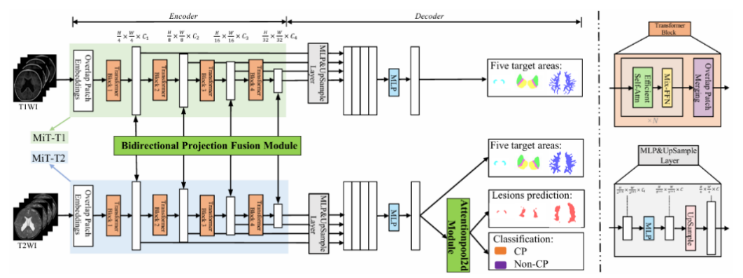 “圣人见微以知萌,见端以知末”。西安交大一附院杨健教授团队、数学与统计学院孙剑教授团队进一步融合人工智能,实现关键脑区病变的自动识别与多模态特征融合,初步建成脑瘫风险智能评估系统,相关算法发表于IEEE Trans Med Imaging,亓凯博士、黄婷婷博士为论文共同第一作者,孙剑教授、杨健教授为论文共同通讯作者。
