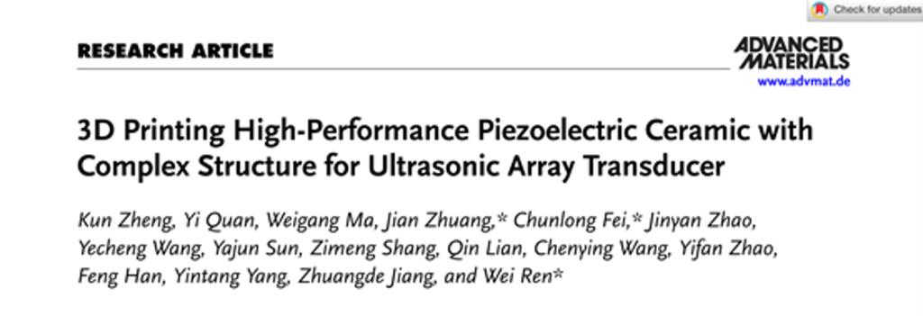 压电器件是现代医疗诊断、工业无损检测和智能传感系统的“心脏”,其中关键压电材料的高性能化与复杂结构成形能力对于实际应用都至关重要。与传统制备方法(如模具成型、机械加工)相比,3D打印技术在高精度阵列、曲面结构等复杂/异形结构压电陶瓷元件的制备方面已经逐渐展现出了成型速度快、设计灵活度高等突出优势。然而3D打印压电陶瓷致密化困难,电学性能与传统方法制备的陶瓷相比仍有差距,导致3D打印压电器件的性能受到限制,很难满足实际的工程应用需求。具体来讲,打通一条从“打印成型”、“烧结致密”到“器件集成”的完整技术链路,需要解决以下几个难题:首先将高折射率的压电陶瓷粉体(尤其是铅基粉体)引入光敏树脂中,会严重影响UV光的固化过程,极易导致固化性能差、分层开裂等问题,进而影响最终烧结陶瓷的性能;其次,生坯的后续烧结致密工艺的难点在于打印引入的微小缺陷可能导致烧结过程中的致密化不充分等问题,使陶瓷内部出现较多孔隙;最后,在器件应用环节,如何合理设计与材料匹配的器件结构,利用高性能和复杂/异形结构陶瓷制备出高性能的压电器件,并验证其在实际应用中的优势,也是一大难题。这些难题并非孤立存在,而是环环相扣。如何建立和实现从材料、打印到器件的一体化设计与制造,是当前3D打印压电陶瓷从实验室样品走向实际应用必须跨越的关键鸿沟。