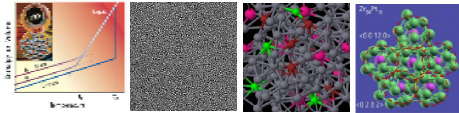 人们通常见到的合金都是晶体。然而,当结晶被快冷抑制之后,得到的合金虽然外表看上去与常规合金无异,内部却已完全不存在晶体结构,如图1中左图所示。周期表中大多数元素及其组合,都能够以非晶态存在, 例如,非晶态的单质Ta、Au,二元、三元乃至多元的Ni-B、Cu-Zr、Ce-Al、Mg-Cu-Y、Fe-Si-B、Sc-Sb-Te、Pd-Ni-Cu-P、Zr-Cu-Ni-Al等等。这带来了大量的新材料、各种各样的新性能、以及新的加工成型方法,从而开辟了一个平行于常规合金的新维度。
