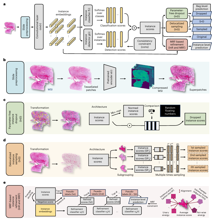 在癌症精准诊疗中,千兆像素级的数字病理切片是“金标准”。然而,长期以来计算病理学面临着一个巨大的“黑盒”难题:现有的主流AI方法(多实例学习MIL)虽然能以较低成本判断切片“是否有癌症”,但无法回答“病灶具体在哪里”“恶性程度如何分布”以及“各类亚型占多大比例”。要想获得这些关键信息,往往需要病理医生投入大量精力进行逐像素的“手动描绘”,这在临床上几乎是不可能完成的任务。