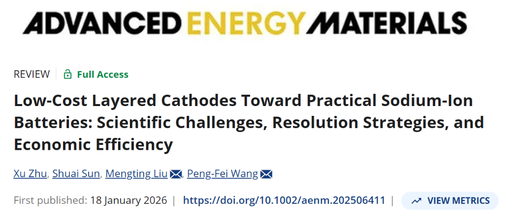 近日,西安交通大学电工材料电气绝缘全国重点实验室新型储能与能量转换纳米材料研究中心王鹏飞和刘梦婷科研团队在《先进能源材料》发表了题为《面向实用钠离子电池的低成本层氧正极:科学挑战、解决策略与经济有效性》(Low‐Cost Layered Cathodes Toward Practical Sodium‐Ion Batteries: Scientific Challenges, Resolution Strategies, and Economic Efficiency)的综述论文。