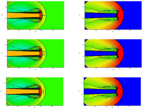 高马赫数天体射流数值模拟密度与压强云图