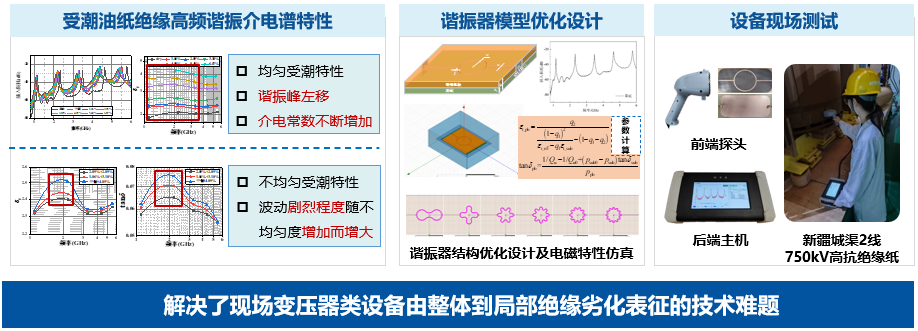掌握了1GHz~6GHz下纸绝缘高频介电特性的演变规律,研发了基于环状、花瓣状微带谐振器的手持式局部含水量快速测定仪,实现了油纸绝缘局部含水量的快速准确测试。
