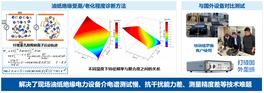 提出了一种油纸绝缘的老化/受潮无损量化辨识方法,研发了具有中低频自适应合成、主动误差抑制及动态供电阵列级联放大等功能的介电响应绝缘诊断仪,实现了复杂电磁与时变温度环境下快速测试。