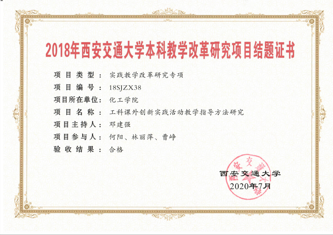 7月15日,课题组于2018年11月申请并获得立项的本科实践教改项目“工科课外创新实践活动教学指导方法研究”通过验收。