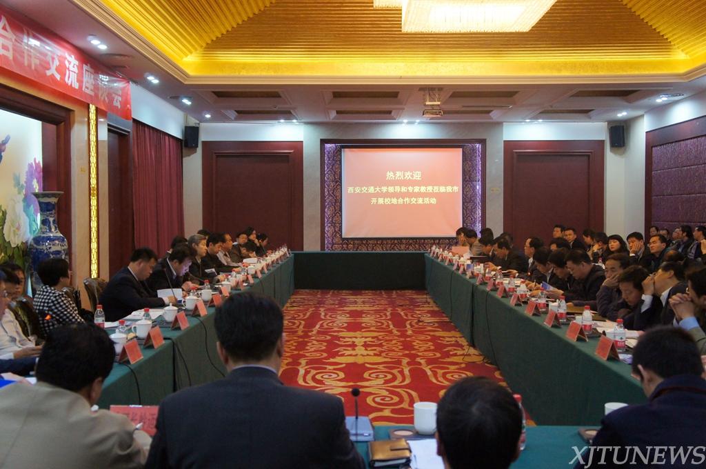 2014年10月,西安交大与包括宝鸡市在内的陕西省12市区签署了战略合作协议,开启了西安交大与陕西省校地合作的新起点。张迈曾书记表示,西 安交大在建设世界一流高水平大学的道路上,要以服务地方区域经济发展为己任,主动走出校门、融入地方发展,为建设“三个陕西”做出自己的贡献。宝鸡是中国 工业重镇,此行就是要推进战略合作协议,让交大优秀的科研成果在宝鸡落地生根,共建人才培养基地,带动校地合作进入实质性全面合作新阶段。