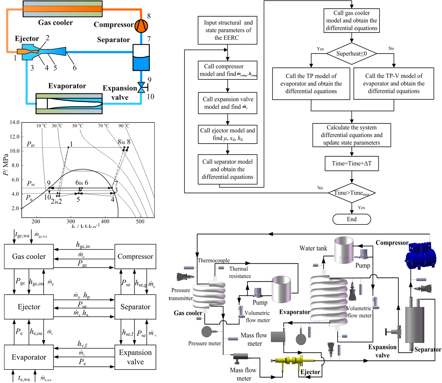 该论文建立了如图所示跨临界CO2引射制冷循环的动态模型,并通过实验验证了模型的准确性。然后分析了不同扰动情形下系统的动态响应,为引射系统的性能优化和动态策略开发提供了基础。该论文受到国家自然科学基金的支持。