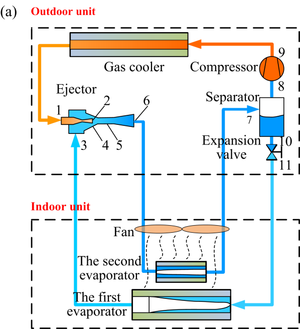 该论文对课题组之前提出的跨临界CO2两级蒸发引射制冷系统建立动态模型,通过系统实验装置对所建模型进行了验证,分析了不同扰动阶跃下系统参数的演化规律,并与常规跨临界CO2引射制冷系统的动态响应进行对比。此外,还探讨了多种调节手段联合作用下系统性能的提升效果。所做工作进一步深化了跨临界CO2两级蒸发引射制冷系统的应用研究,该论文受到国家自然科学基金的支持。