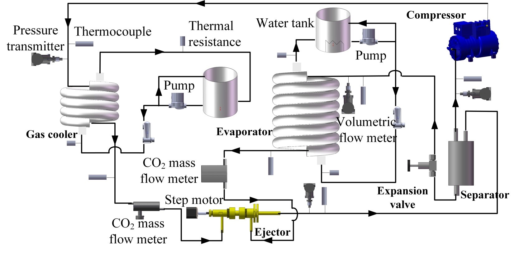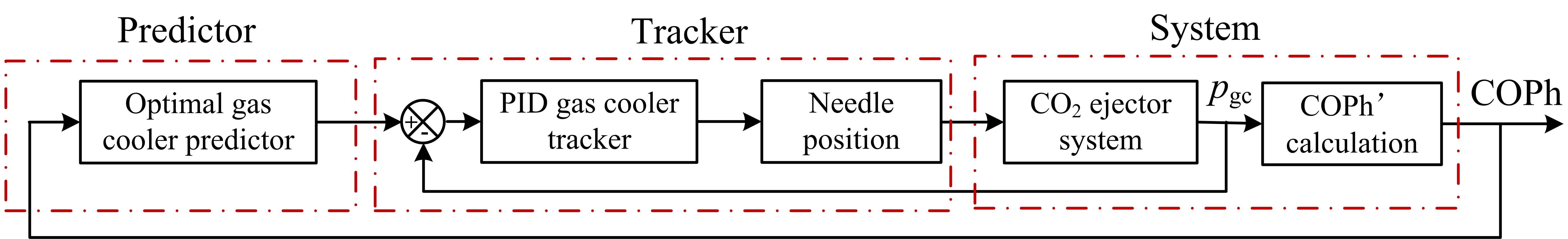 该论文建立了如图所示单通道级联最优控制器,通过在线调节引射器喷嘴喉部面积,实现了跨临界CO2引射制冷系统以最大COP稳定运行。文章基于动态模型设计控制器参数,并通过实验验证了实际控制效果。该论文受到国家自然科学基金的支持。