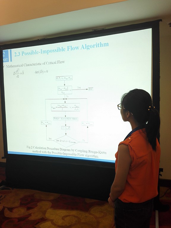 课题组博士生马莉做了题为《An improved homogeneous relaxation model for CO2 two-phase nozzle choking flow》的报告,介绍了一种改进的均质弛豫模型及预测临界质量流量的耦合算法,分析了喷嘴内压力分布情况及非平衡特征。