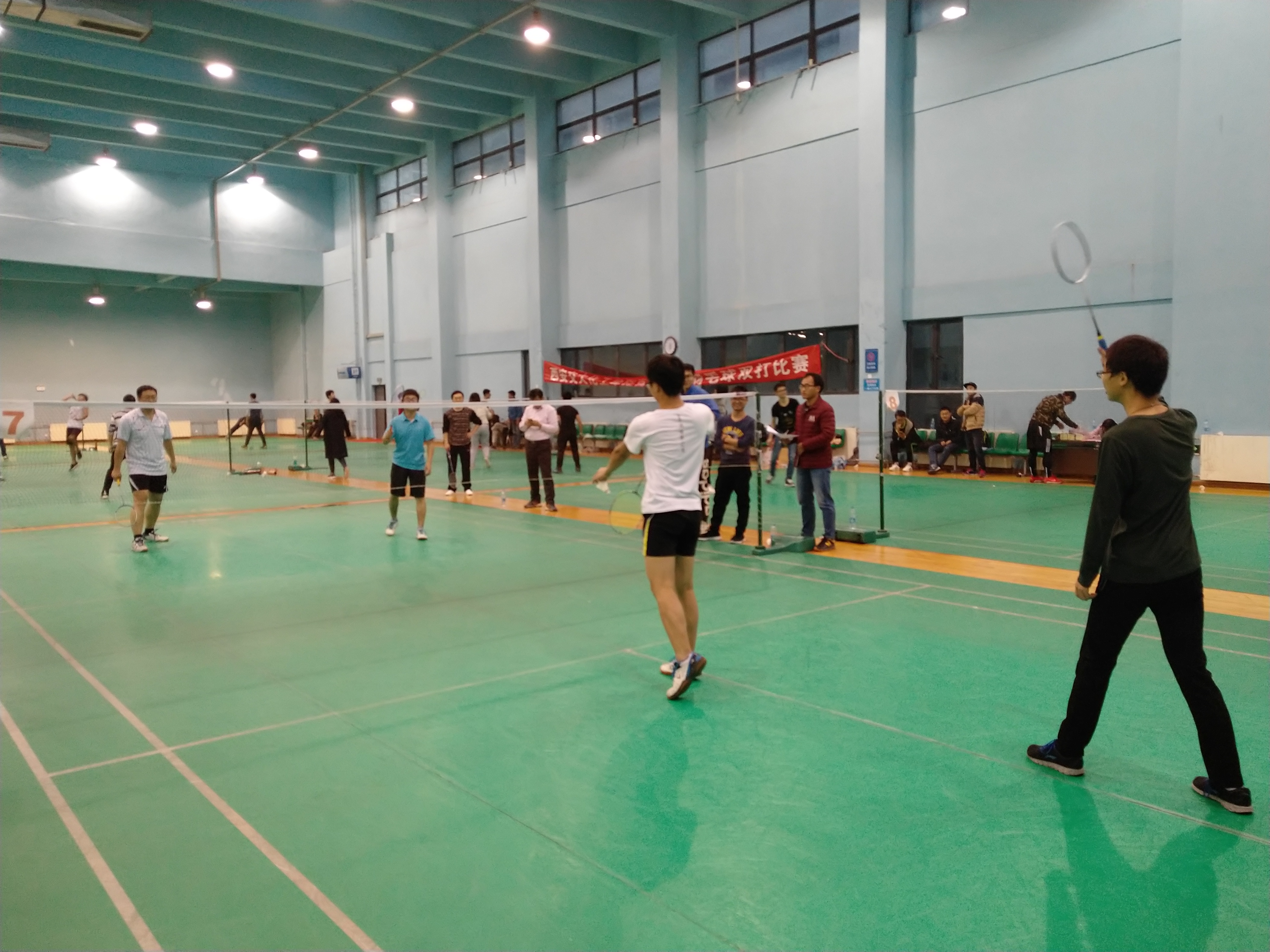 此次比赛受到了化工学院师生的广泛关注和热烈欢迎,比赛分男双、女双和混双赛制进行比赛,共有46队,92位老师和研究生参加了比赛。课题组积极响应学院领导的号召,曹峥/邓建强老师、龚明强/叶芳华、刘凯/王泽良、王蒙/唐登超、周升辉共9人作为选手参加了比赛,马莉、李亚飞以裁判身份全程参与了此次项目。