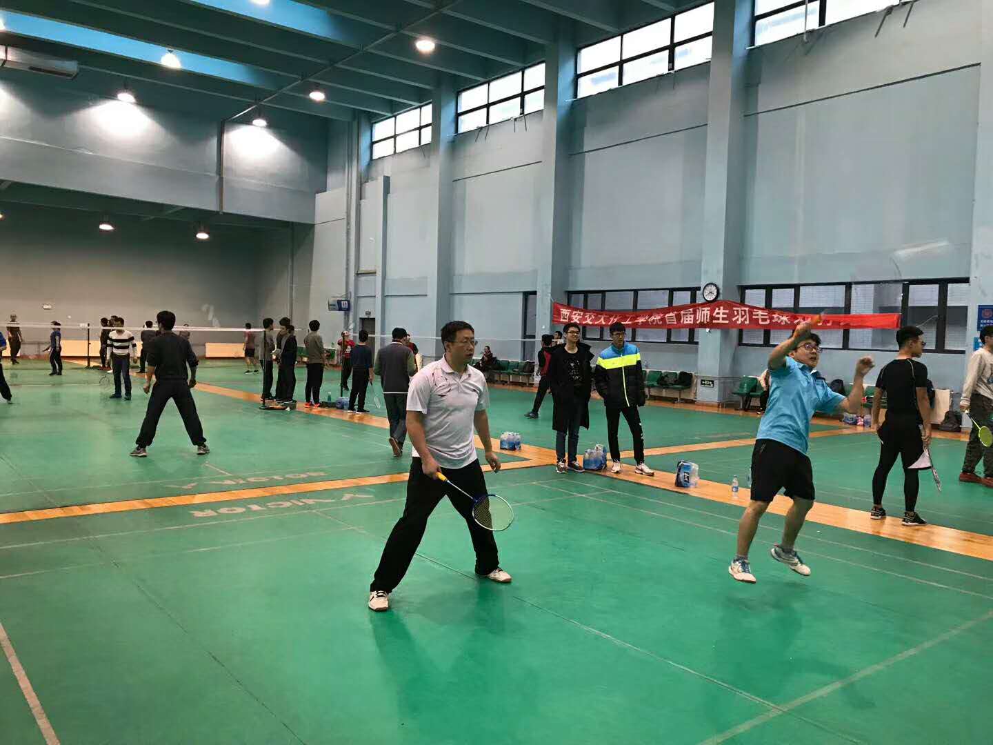 在上午的小组循环赛中,课题组各个组合的队友们相互鼓励,互相表达对队友的感谢,此等相亲相爱的局面甚是和谐,最终曹峥/邓建强老师、龚明强/叶芳华、王蒙/唐登超、周升辉四支队伍有幸进入八分之一决赛圈。在下午高手见高手的淘汰赛,课题组的各个组合们喜迎挑战,创造属于自己的辉煌成绩。在一组八分之一决赛中,龚明强/叶芳华与王蒙/唐登超对阵,虽为同门师兄弟,他们本着比赛公平、公正的原则,凭着自己的真实实力获取进入八强的资格。经过下午多轮激烈的淘汰赛,曹峥/邓建强老师与龚明强/叶芳华两个组合一路过关斩将,最终在男双的冠军决赛中实现了顺利会师。在这场师生间的冠军争夺赛中,双方选手没有因为师生身份的原因而限制了自身实力的发挥,用精彩的对攻为现场观众演绎了一场高水平羽毛球比赛,也将现场的气氛推向了一个新的高潮。化工学院党总支副书记沈人杰老师和院工会副主席侯雄坡老师也在现场为这四位努力战斗的选手加油喝彩。最终曹峥/邓建强老师组合获得了男双冠军,龚明强/叶芳华获得了亚军。