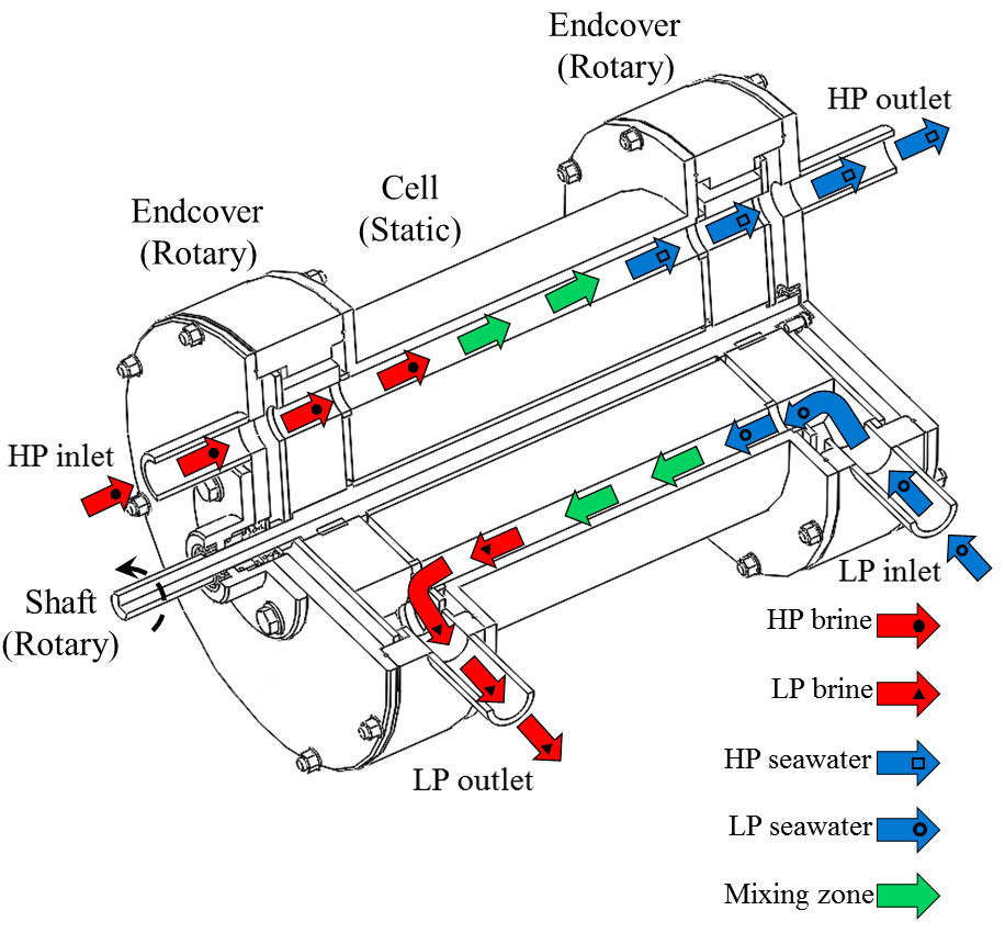 该论文针对脱盐行业中用于能量回收的旋转式压力能交换器,提出了一种用于内部流场可视化实验的旋转配流盘式压力能交换器,通过PIV实验方法获得了内部孔道中的湍流结构,发现了孔道入口和中心区域分别存在“入口效应”(Entrance effect)和稳定区(Liquid piston)。有两位审稿人评述“This is a relevant experimental work that can be used to validate numerical predictions as well as for designing purposes that should be published”、“The time-averaged velocity fields are given graphically and can be used to assist numerical modeling……I recommend that this paper be accepted”,均表示出对本工作的直接认可。