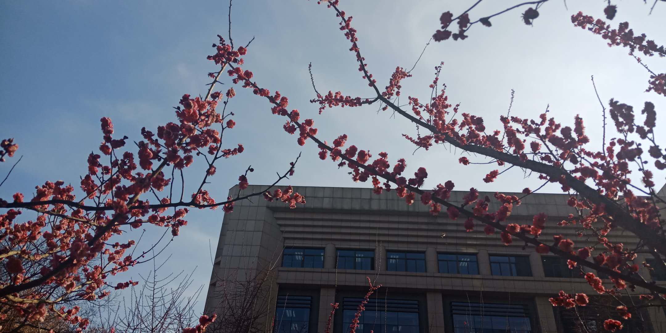 “竹外桃花三两枝,春江水暖鸭先知”,在北方的校园里虽然没有春江流水,但从暖阳下盛开的桃花中依然能探寻到春天到来的气息。